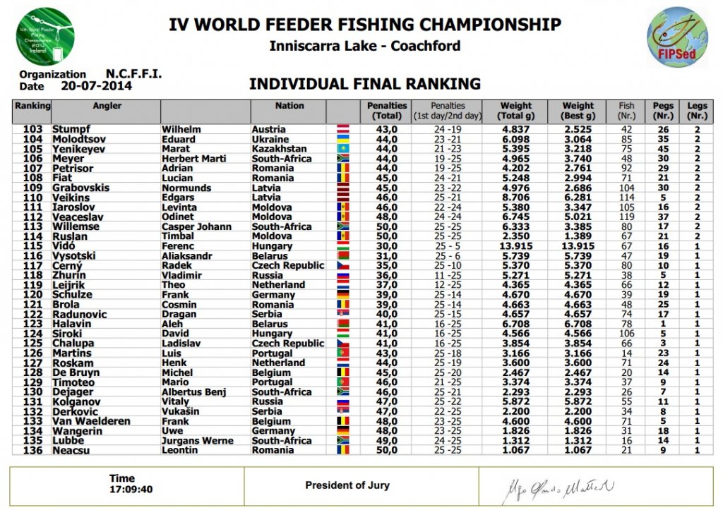 Чемпионат мира по фидеру 2014, Ирландия